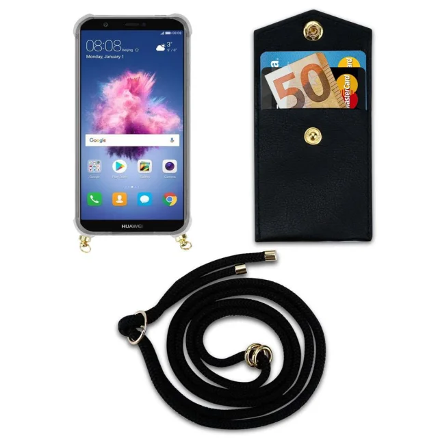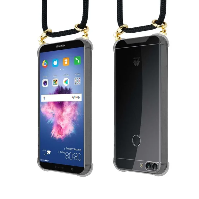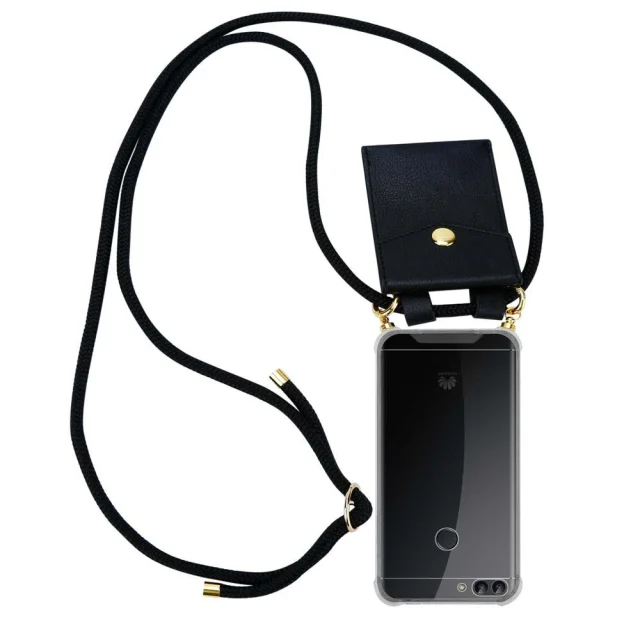 CADORABO VRGA ZA MOBILNO PELETON Združljivo s Huawei v črni barvi - silikonski zaščitni pokrov z zlatimi obroči, pasom za vrvi in snemljivim ohišjem
