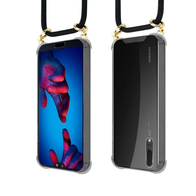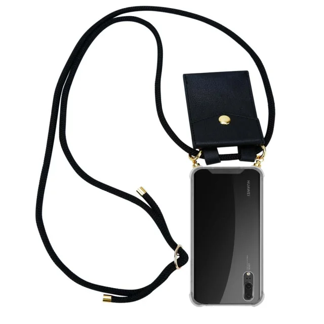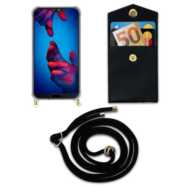 CADORABO VRGA ZA MOBILNO PELETON Združljivo s Huawei v črni barvi - silikonski zaščitni pokrov z zlatimi obroči, pasom za vrvi in snemljivim ohišjem