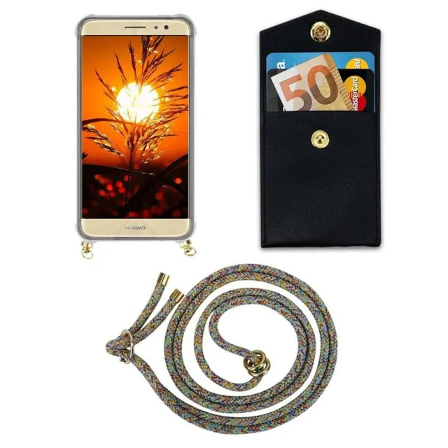 CADORABO VRGA ZA MOBILNO PELETON Združljivo s Huaweijem v mavrici - silikonski zaščitni pokrov z zlatimi obroči, kabelskim pasom in snemljivim ohišjem