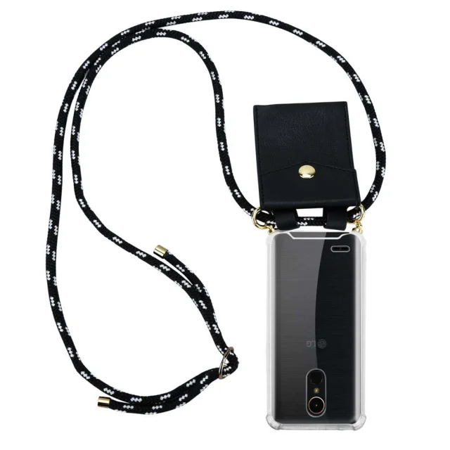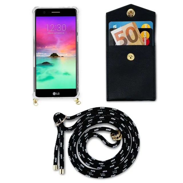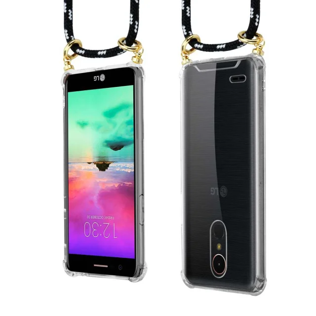 CADORABO VRGA ZA MOBILNO PELETON Združljivo z LG v črnem srebru - Silikonski zaščitni pokrov z zlatimi obroči, jermen za vrvice in snemljivimi ohišjem