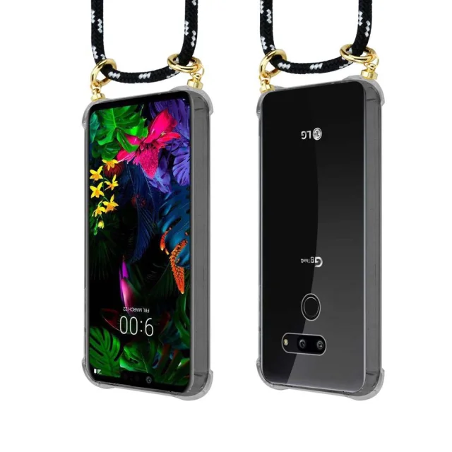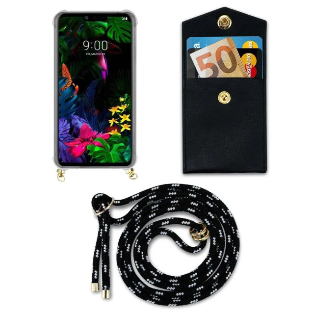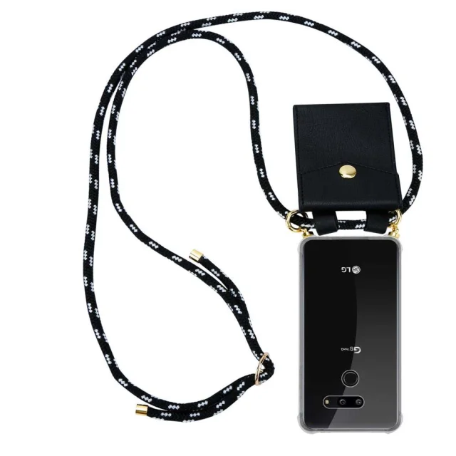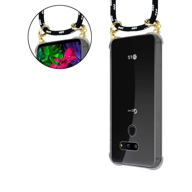 CADORABO VRGA ZA MOBILNO PELETON Združljivo z LG v črnem srebru - Silikonski zaščitni pokrov z zlatimi obroči, jermen za vrvice in snemljivimi ohišjem