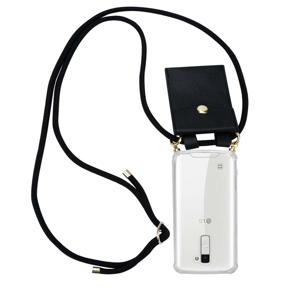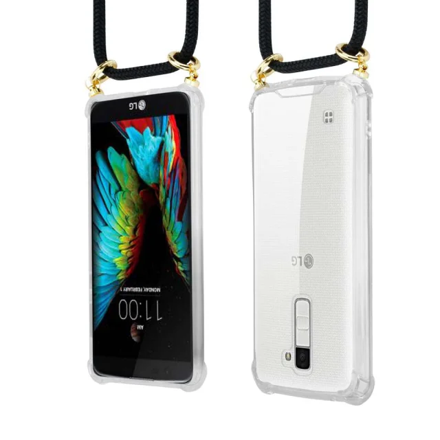 CADORABO VRGI ZA MOBILNI PELETON Združljiva z LG v črni barvi - silikonski zaščitni pokrov z zlatimi obroči, pasom za vrvi in snemljivim ohišjem