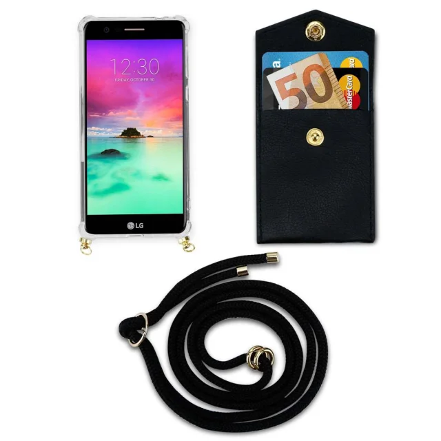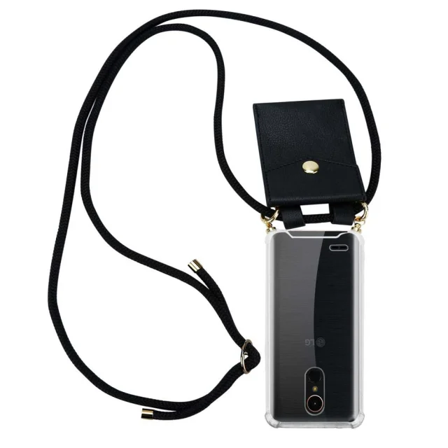 CADORABO VRGI ZA MOBILNI PELETON Združljiva z LG v črni barvi - silikonski zaščitni pokrov z zlatimi obroči, pasom za vrvi in snemljivim ohišjem