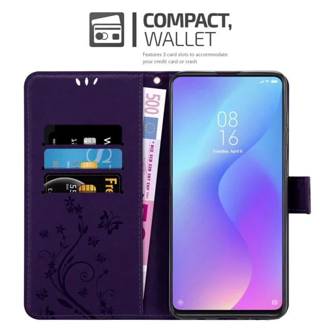 CADORABO Xiaomi Mi 9T/Mi 9T PRO/RedMi K20/RedMi K20 PRO temno modra - ovitek v cvetličnem dizajnu z magnetnim zapiranjem, stoječo funkcijo in r