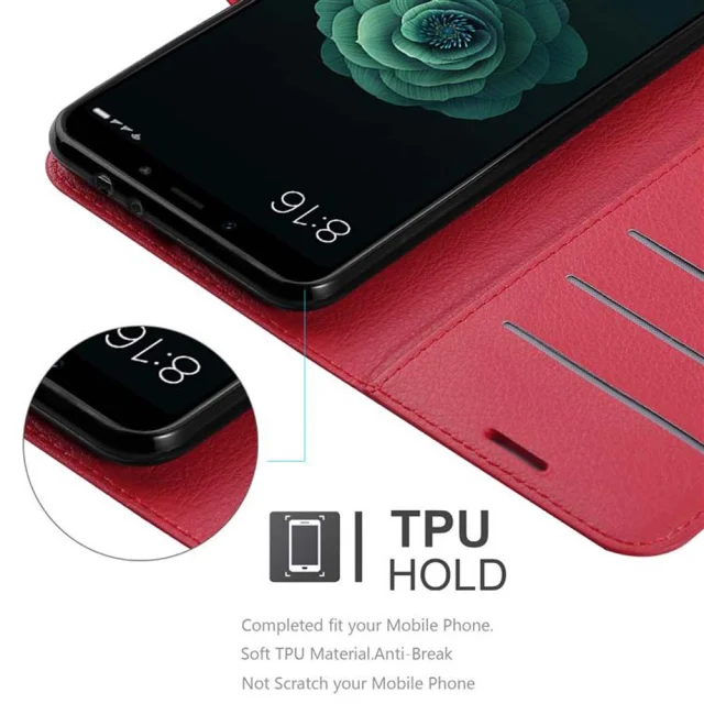 CADORABO Xiaomi Mi A2/Mi 6X v rdeče sladkorno jabolko - Zaščitni ovitek z magnetnim zapiranjem, stoječo funkcijo in režo za kartice