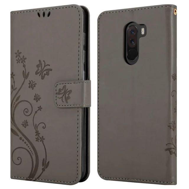 CADORABO Xiaomi Pocophone F1 v klasična črna - ovitek v cvetličnem dizajnu z magnetnim zapiranjem, stoječo funkcijo in režami za kartice