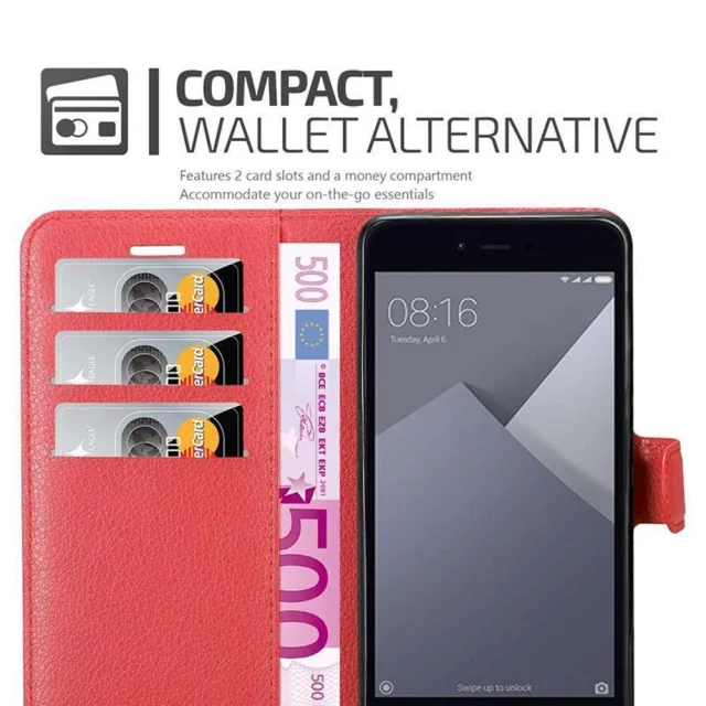 CADORABO Xiaomi RedMi NOTE 5A v rdeče sladkorno jabolko - Zaščitni ovitek z magnetnim zapiranjem, stoječo funkcijo in režo za kartice