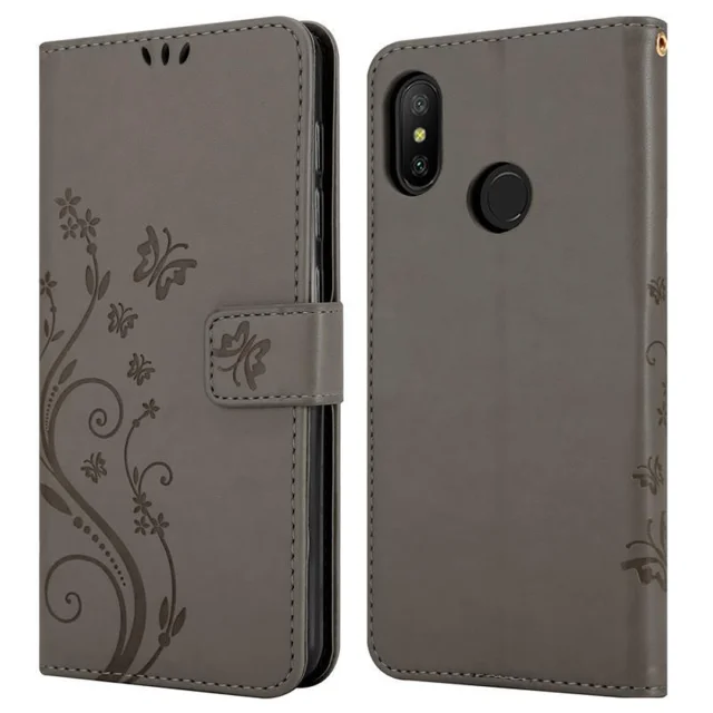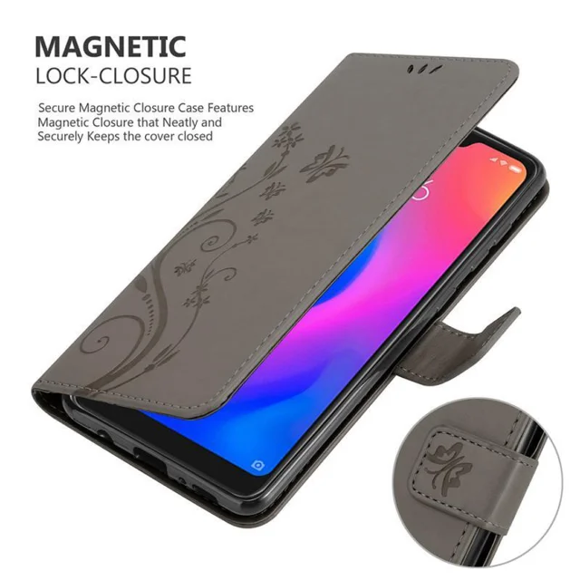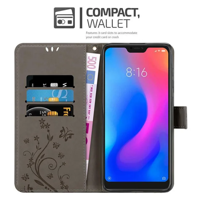 CADORABO Xiaomi RedMi NOTE 6 PRO v klasična črna - ovitek v cvetličnem dizajnu z magnetnim zapiranjem, stoječo funkcijo in režami za kartice