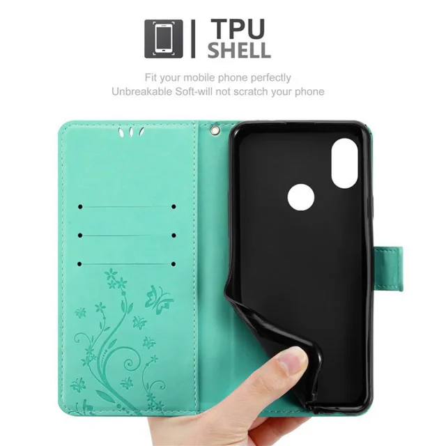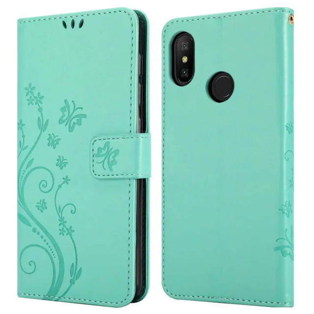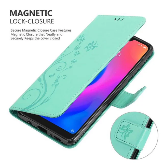 CADORABO Xiaomi RedMi NOTE 6 PRO v klasično srebrno - ovitek v cvetličnem dizajnu z magnetnim zapiranjem, stoječo funkcijo in režami za kartice