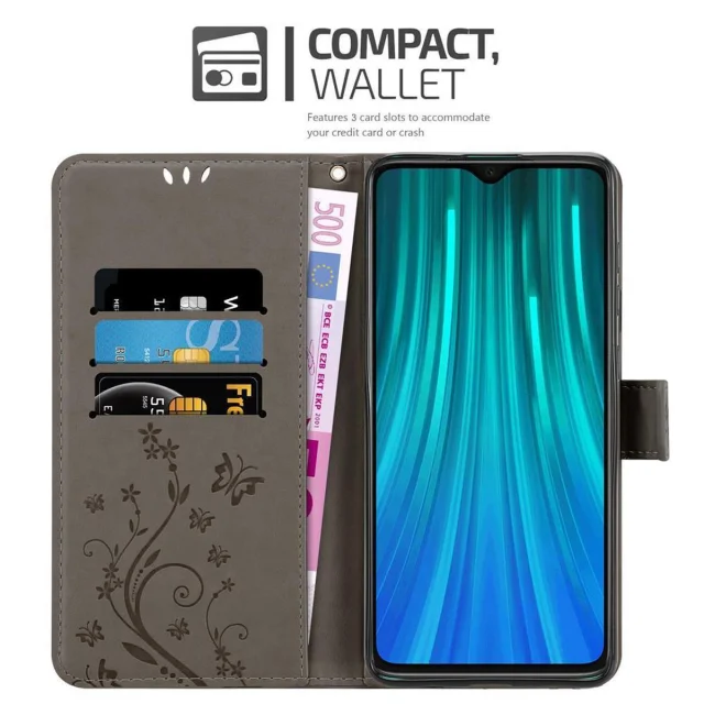 CADORABO Xiaomi RedMi NOTE 8 PRO v klasična črna - ovitek v cvetličnem dizajnu z magnetnim zapiranjem, stoječo funkcijo in režami za kartice