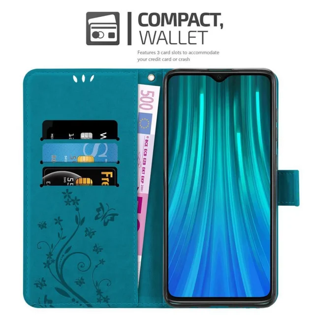 CADORABO Xiaomi RedMi NOTE 8 PRO v klasična rožnata zlata - ovitek v cvetličnem dizajnu z magnetnim zapiranjem, stoječo funkcijo in režami za kartice