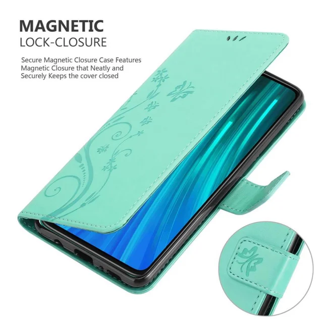 CADORABO Xiaomi RedMi NOTE 8 PRO v klasično srebrno - ovitek v cvetličnem dizajnu z magnetnim zapiranjem, stoječo funkcijo in režami za kartice