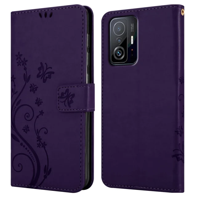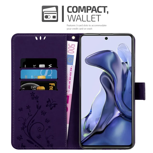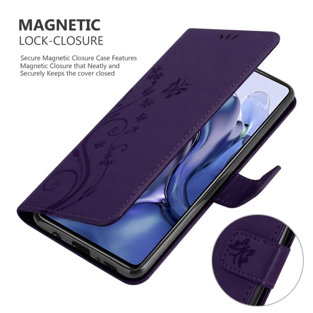 CADORABO Xiaomi temno vijolična - Zaščitni pokrov pri oblikovanju cvetja z magnetnim zapiranjem, stoječimi funkcijami in režami za kartice