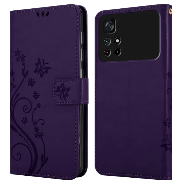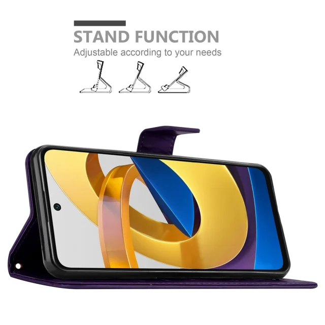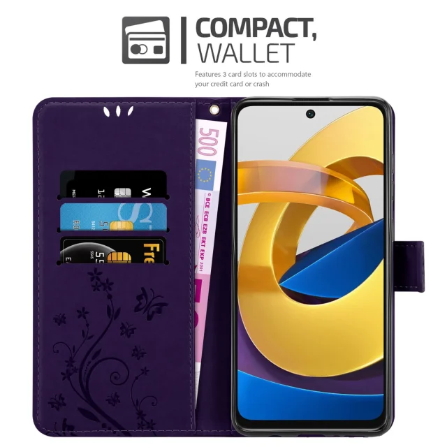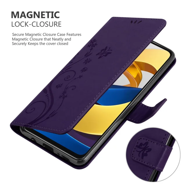 CADORABO Xiaomi temno vijolična - Zaščitni pokrov pri oblikovanju cvetja z magnetnim zapiranjem, stoječimi funkcijami in režami za kartice