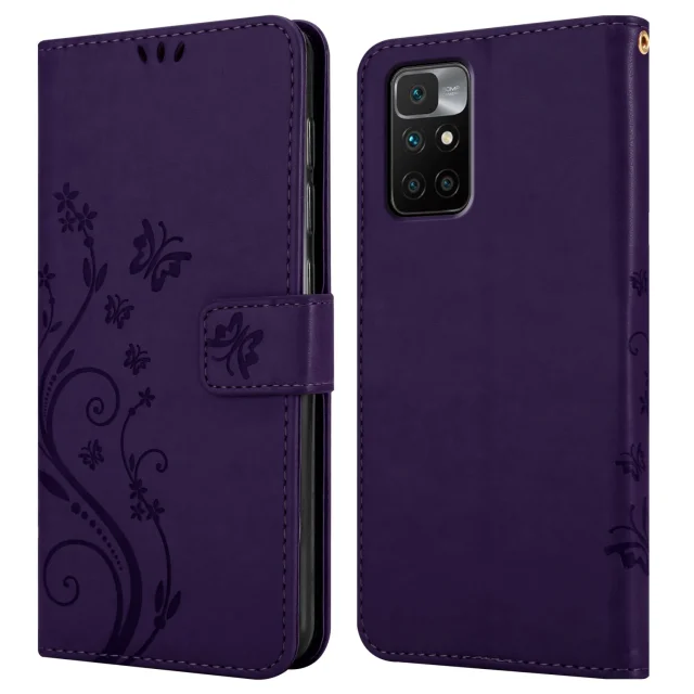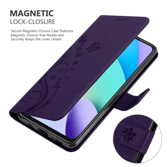 CADORABO Xiaomi temno vijolična - Zaščitni pokrov pri oblikovanju cvetja z magnetnim zapiranjem, stoječimi funkcijami in režami za kartice