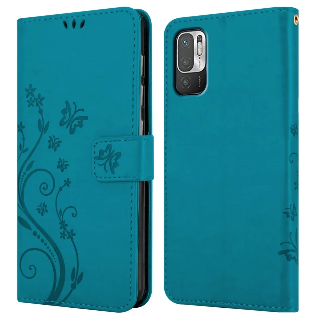 CADORABO Xiaomi v cvetlični modri barvi - zaščitni pokrov pri oblikovanju cvetja z magnetnim zapiranjem, stoječimi funkcijami in režami za kartice