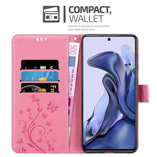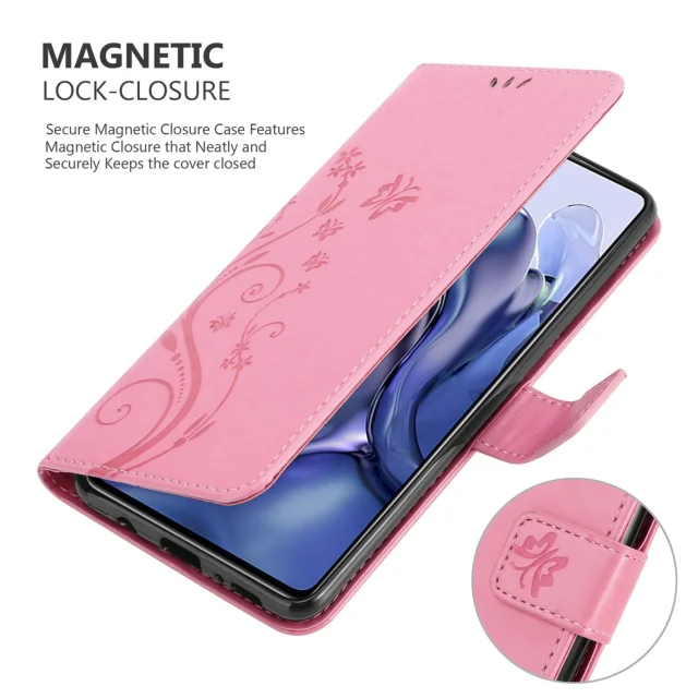 CADORABO Xiaomi v cvetlični roza barvi - zaščitni pokrov pri oblikovanju cvetja z magnetnim zapiranjem, stoječimi funkcijami in režami za kartice