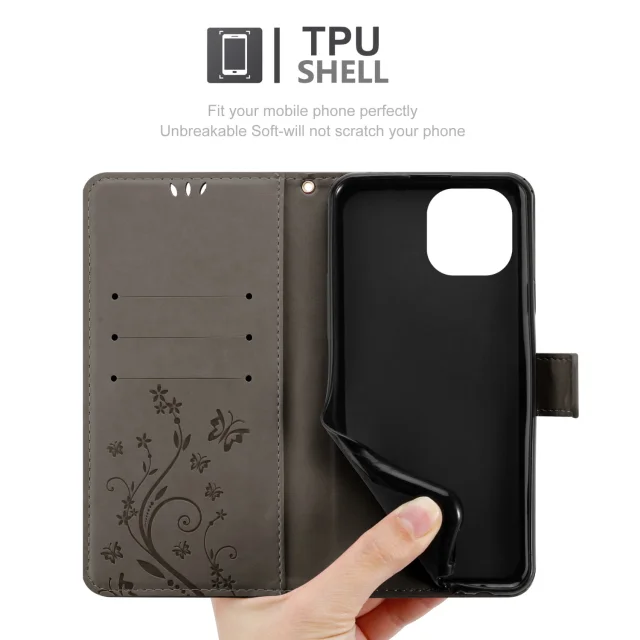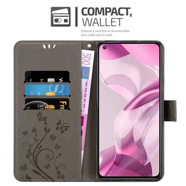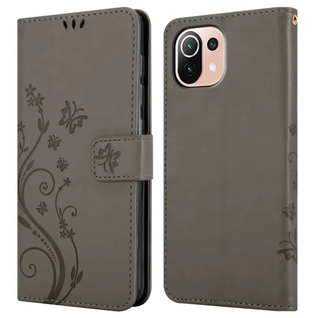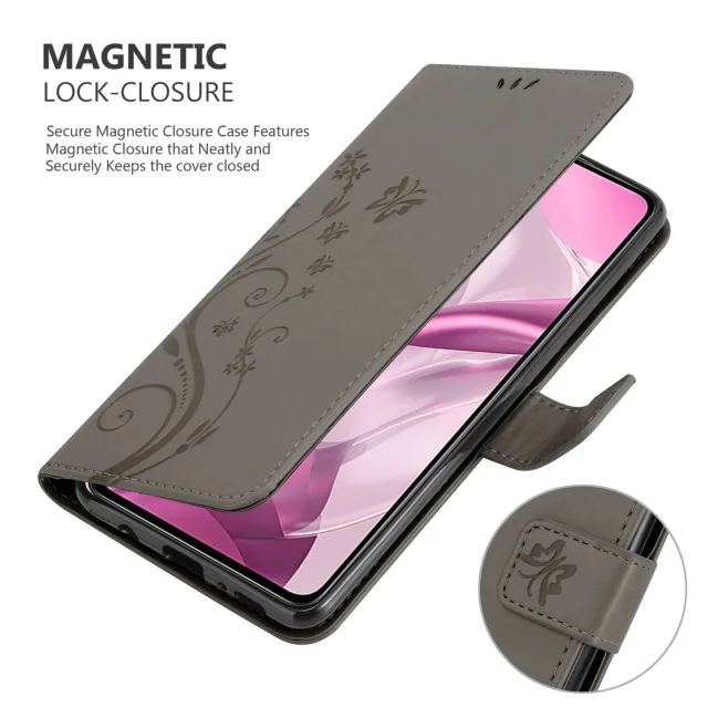 CADORABO Xiaomi v cvetlični sivi barvi - zaščitni pokrov v oblikovanju cvetja z magnetnim zapiranjem, stoječimi funkcijami in režami za kartice
