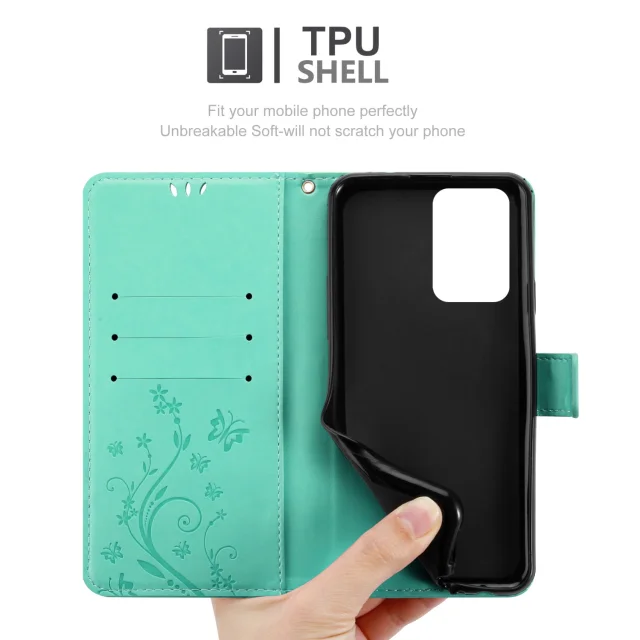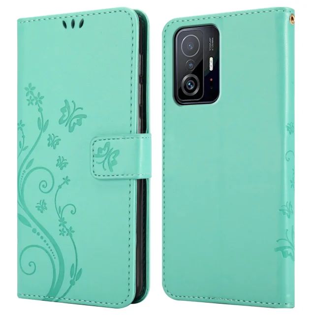 CADORABO Xiaomi v cvetlični turkizni - zaščitni pokrov v oblikovanju cvetja z magnetnim zapiranjem, stoječimi funkcijami in režami za kartice