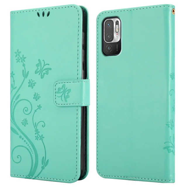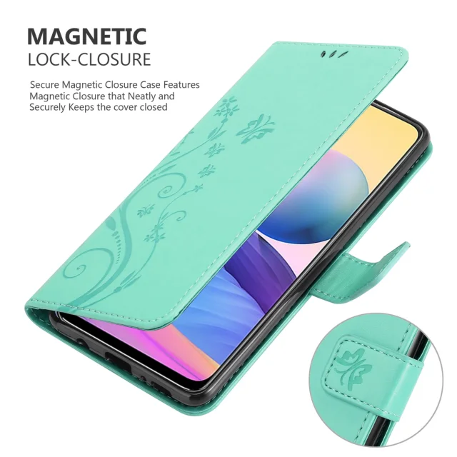CADORABO Xiaomi v cvetlični turkizni - zaščitni pokrov v oblikovanju cvetja z magnetnim zapiranjem, stoječimi funkcijami in režami za kartice