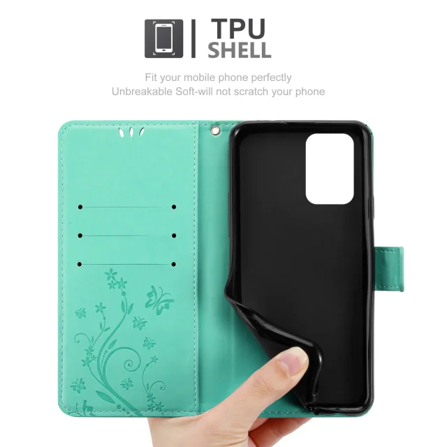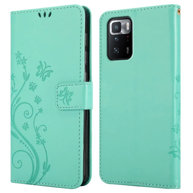 CADORABO Xiaomi v cvetlični turkizni - zaščitni pokrov v oblikovanju cvetja z magnetnim zapiranjem, stoječimi funkcijami in režami za kartice