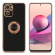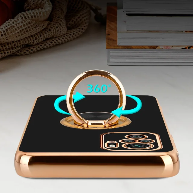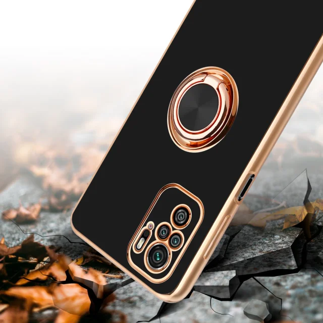 CADORABO Xiaomi v sijajnem črni barvi - zlato z obročem silikonski/TPU ovitek z zaščito pred kamero in držalom magnetnega avtomobila