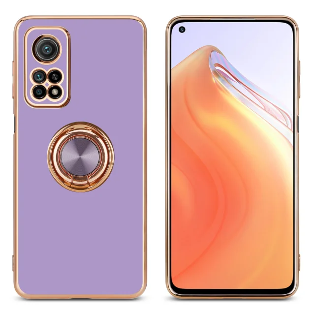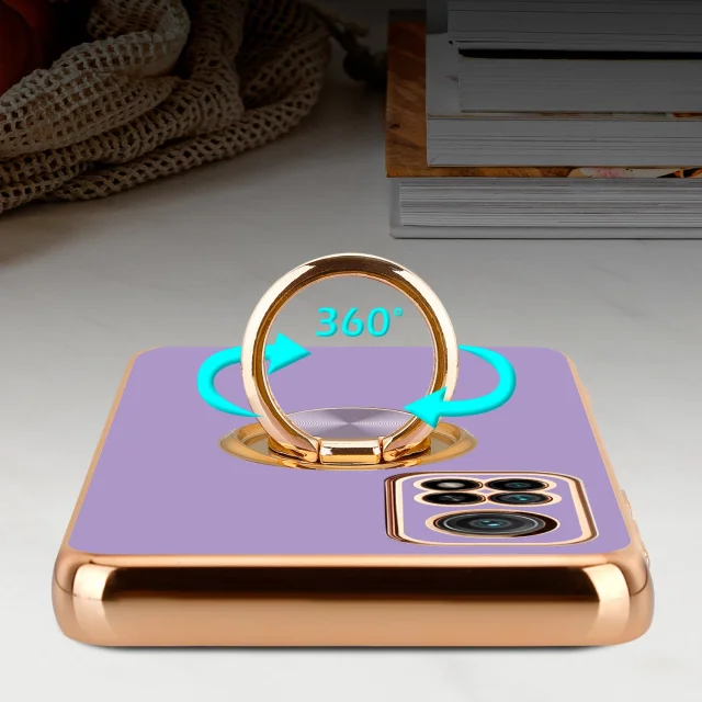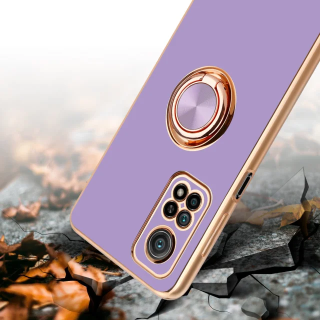 CADORABO Xiaomi v sijajni svetlobi vijolični - zlato z obročem silikonski/TPU ovitek z zaščito pred kamero in držalom za magnetni avtomobil