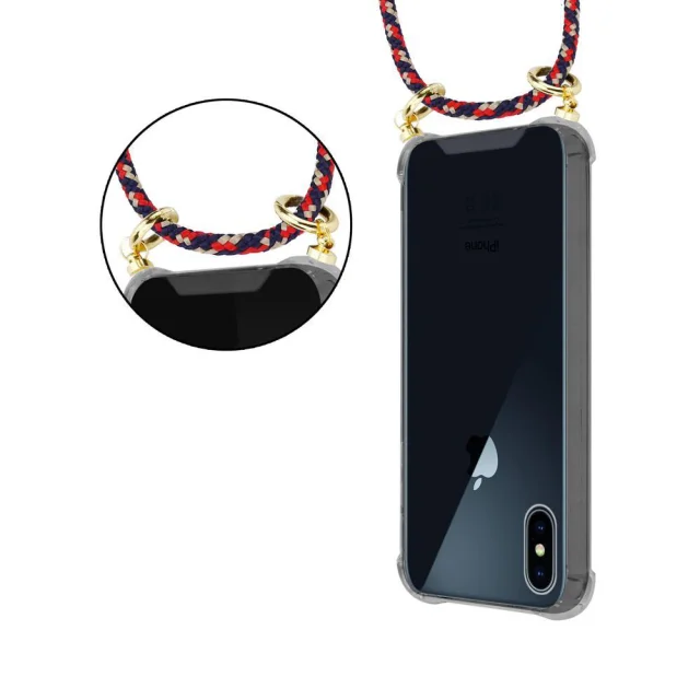 CADORABO ZA VZDRŽEVANJE Z APPLE V RDEČI Blue Rumeni - Silikonski zaščitni pokrov z zlatimi obroči, pasom za vrvi in ​​snemljivim ohišjem