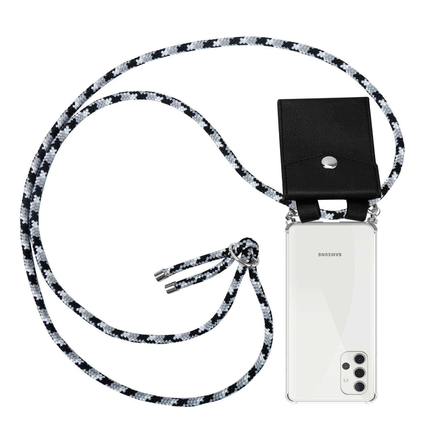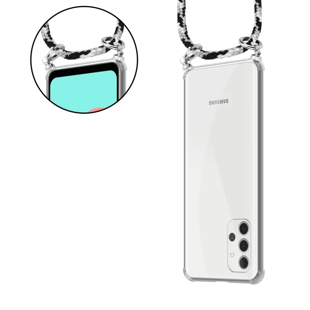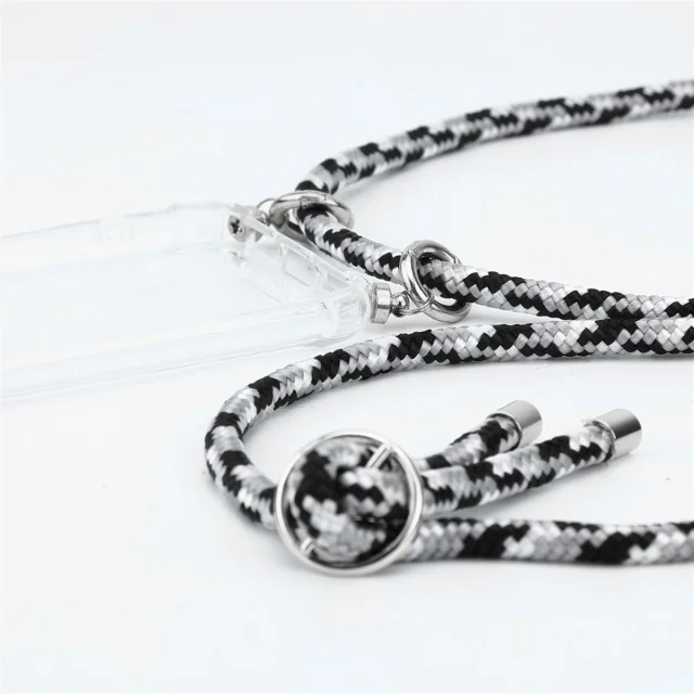 CADORABO združljiv s Samsungom v črni kamuflažji - silikonski zaščitni pokrov s srebrnimi obroči, kabelskim pasom in snemljivim ohišjem