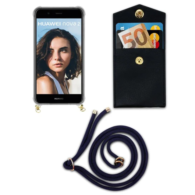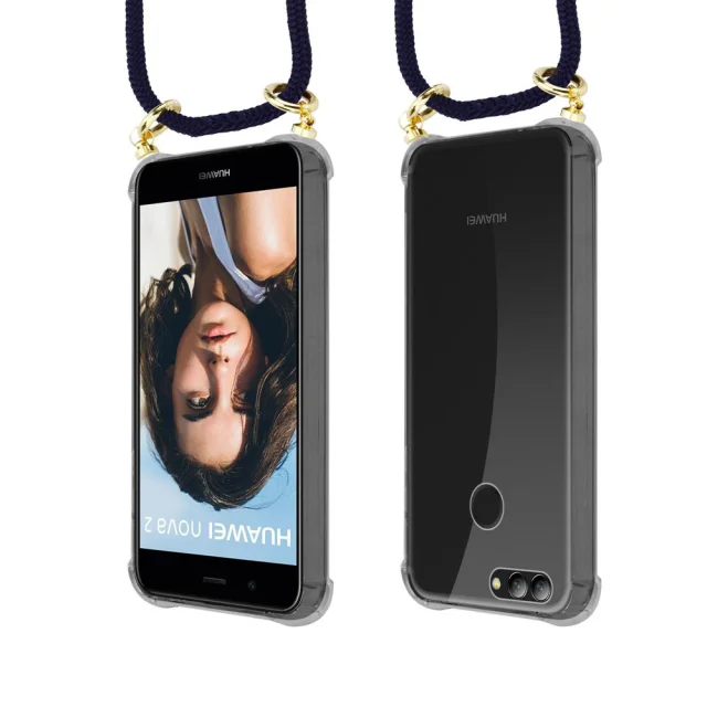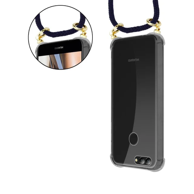 CADORABO Združljiva s Huawei v globoko modri barvi - silikonski zaščitni pokrov z zlatimi obroči, kabelskim pasom in snemljivim ohišjem
