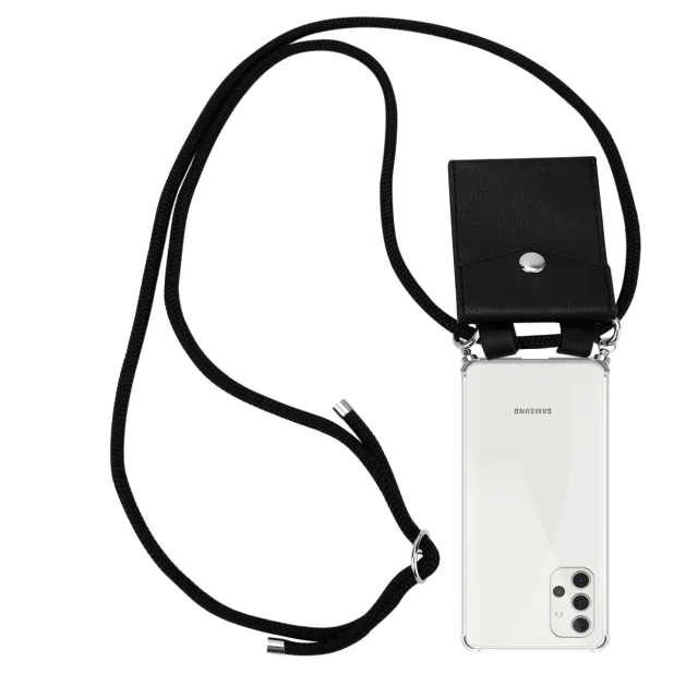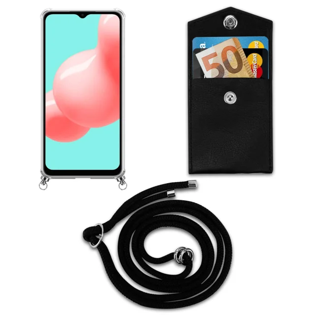 CADORABO Združljiva s Samsungom v črnem - silikonskem zaščitnem pokrovu s srebrnimi obroči, kabelskim pasom in snemljivim ohišjem