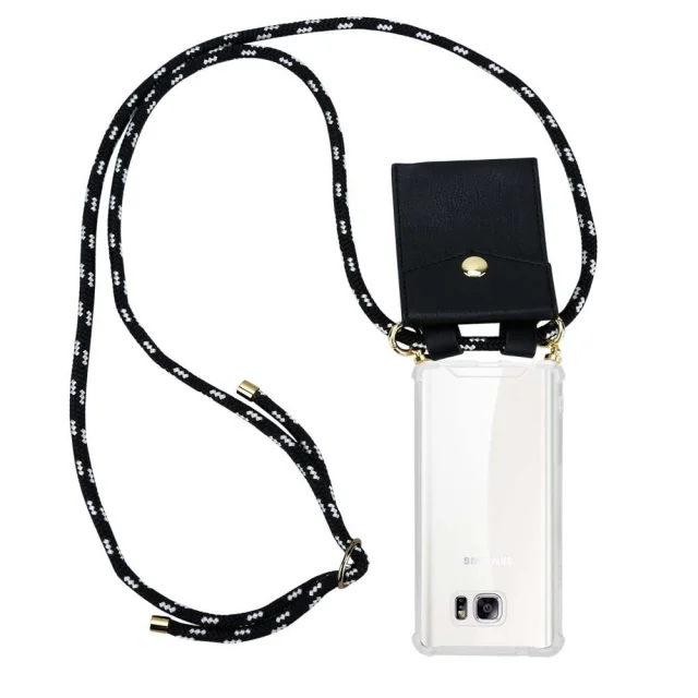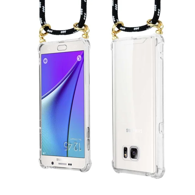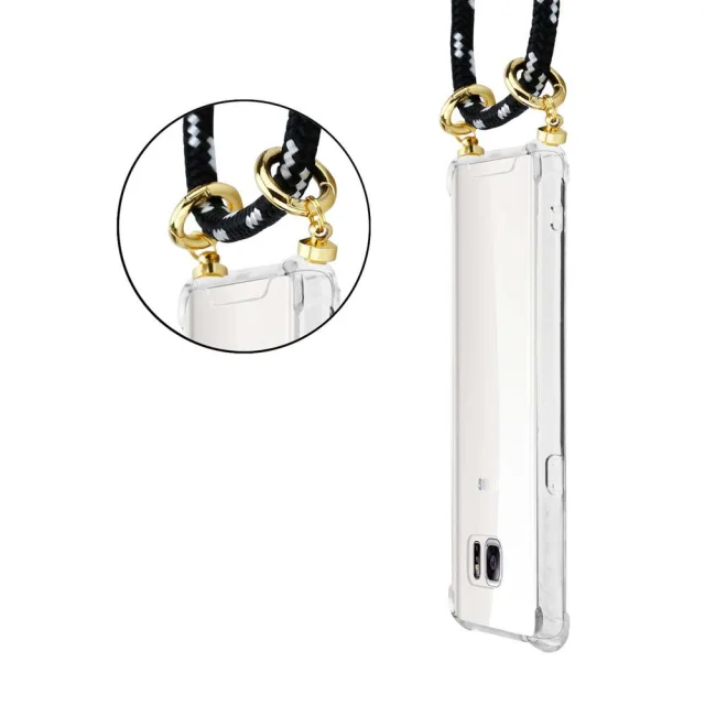 CADORABO Združljiva s Samsungom v črnem srebru - silikonski zaščitni pokrov z zlatimi obroči, jermen za vrvi in ​​snemljiv ohišje