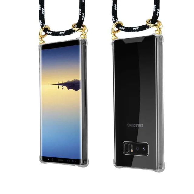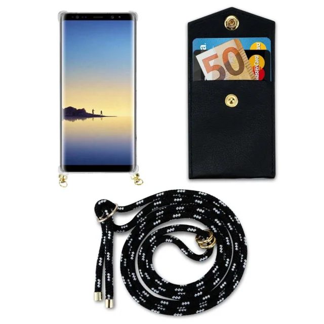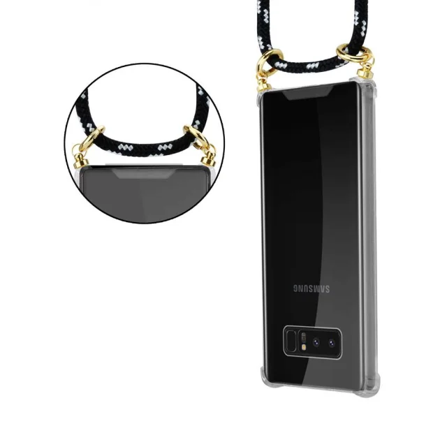 CADORABO Združljiva s Samsungom v črnem srebru - silikonski zaščitni pokrov z zlatimi obroči, jermen za vrvi in ​​snemljiv ohišje