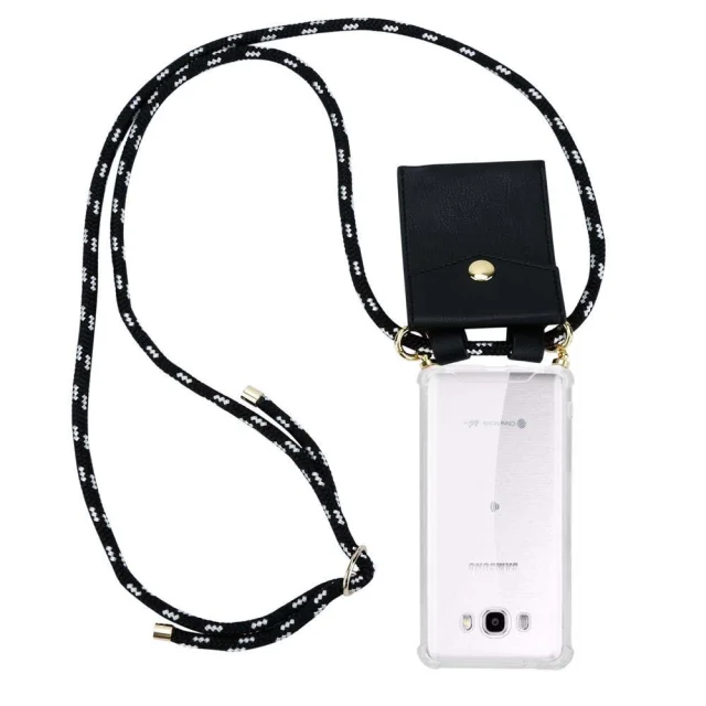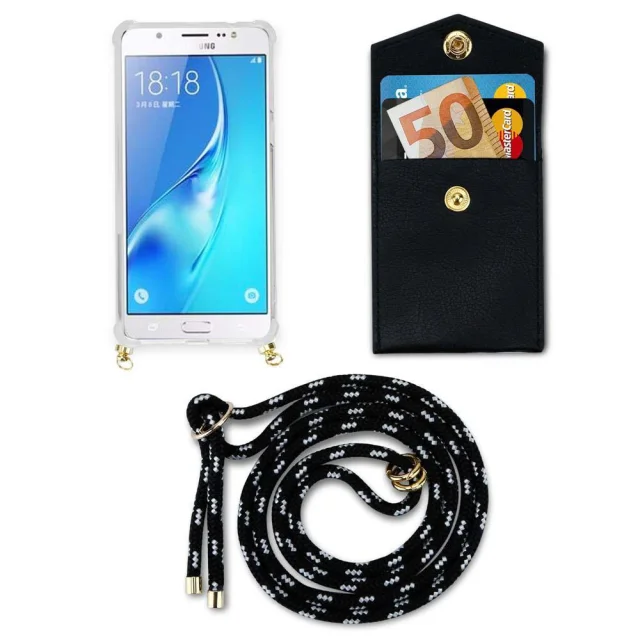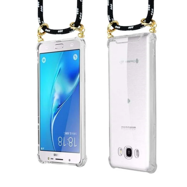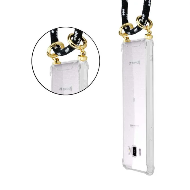 CADORABO Združljiva s Samsungom v črnem srebru - silikonski zaščitni pokrov z zlatimi obroči, jermen za vrvi in ​​snemljiv ohišje