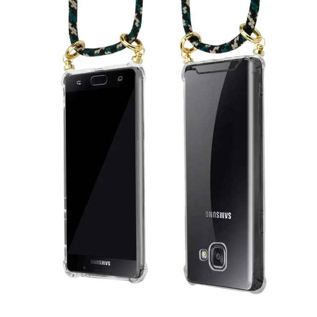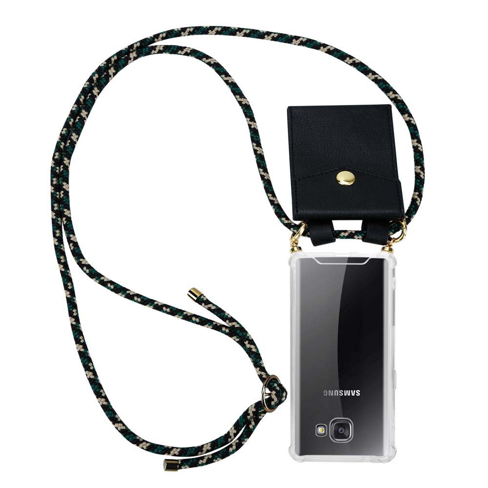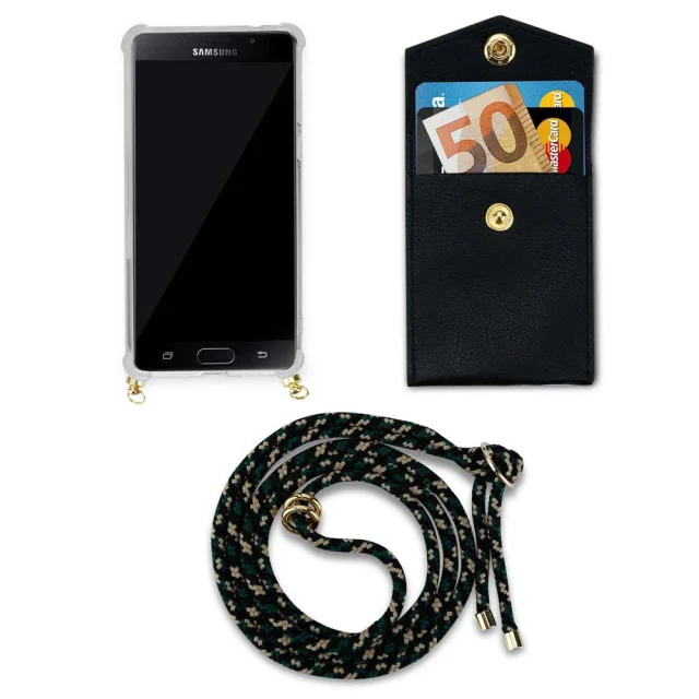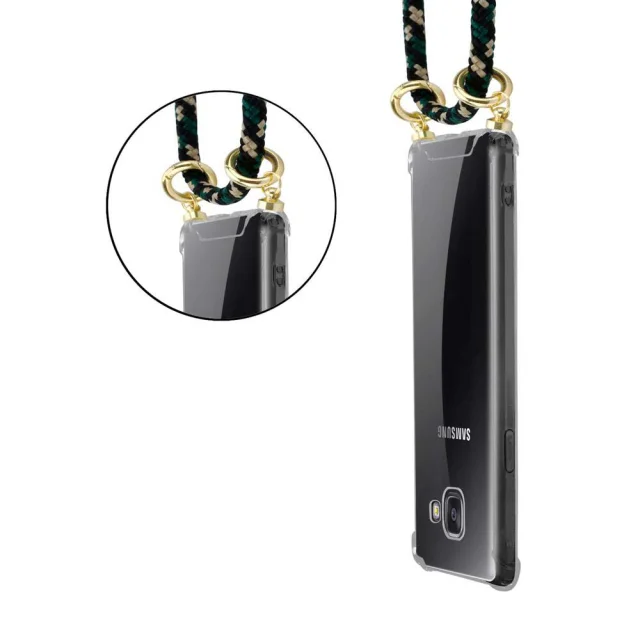 CADORABO združljiva s Samsungom v kamuflaži - silikonski zaščitni pokrov z zlatimi obroči, kabelskim pasom in snemljivim ohišjem