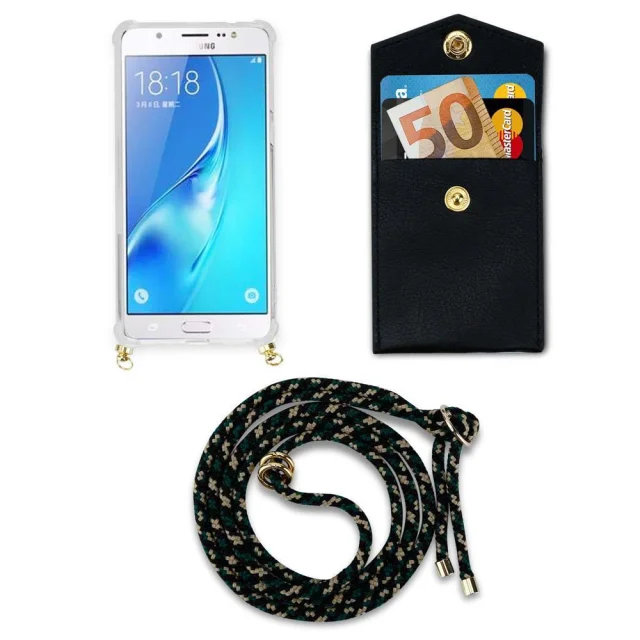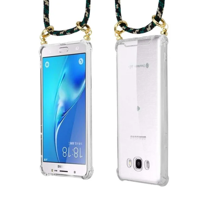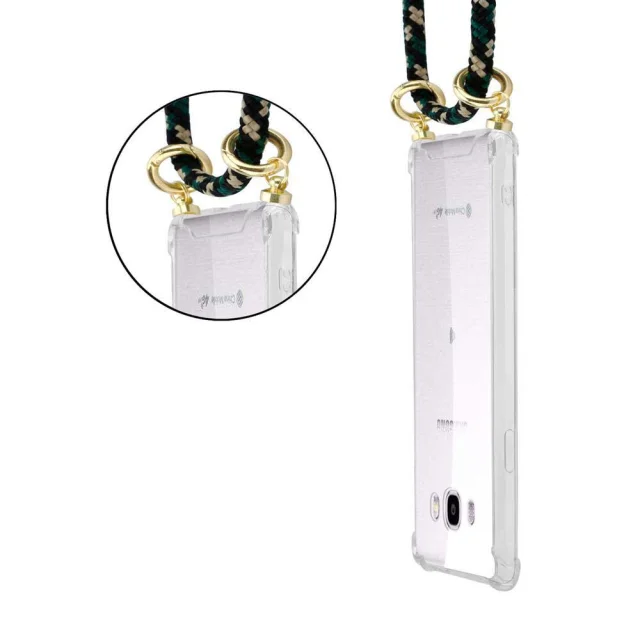 CADORABO združljiva s Samsungom v kamuflaži - silikonski zaščitni pokrov z zlatimi obroči, kabelskim pasom in snemljivim ohišjem