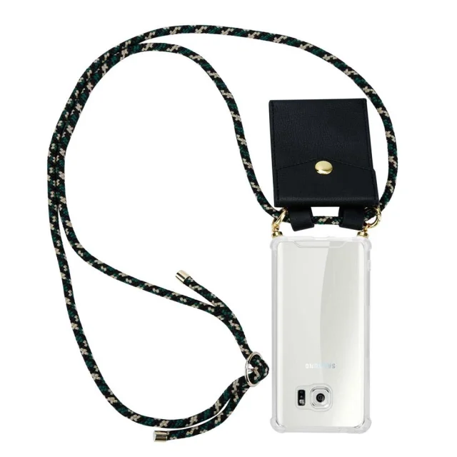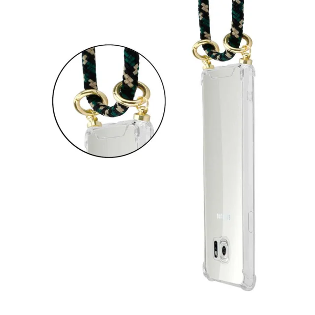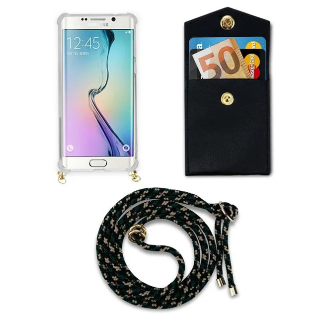 CADORABO združljiva s Samsungom v kamuflaži - silikonski zaščitni pokrov z zlatimi obroči, kabelskim pasom in snemljivim ohišjem