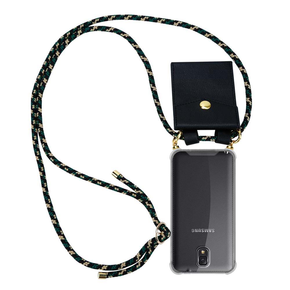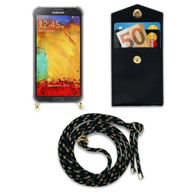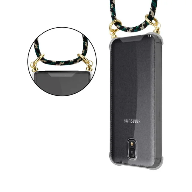CADORABO združljiva s Samsungom v kamuflaži - silikonski zaščitni pokrov z zlatimi obroči, kabelskim pasom in snemljivim ohišjem