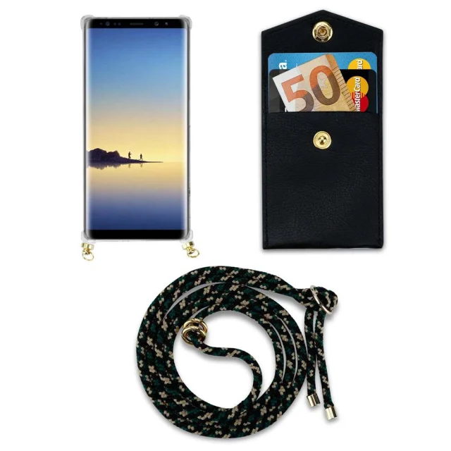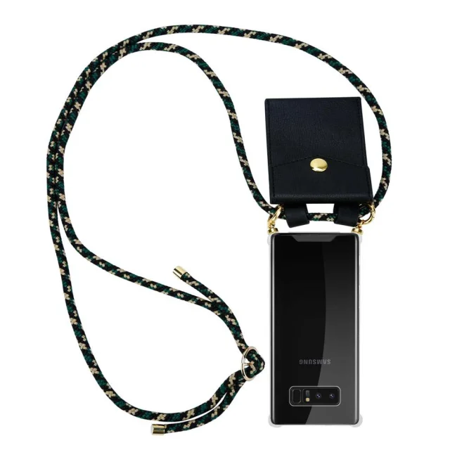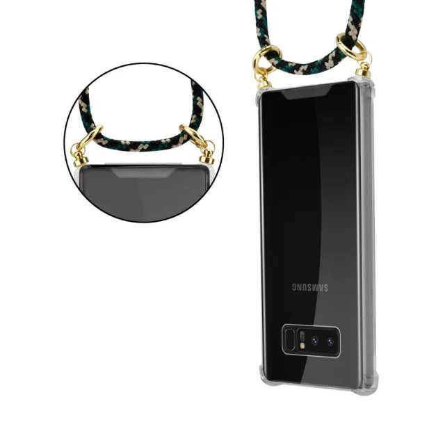 CADORABO združljiva s Samsungom v kamuflaži - silikonski zaščitni pokrov z zlatimi obroči, kabelskim pasom in snemljivim ohišjem