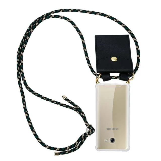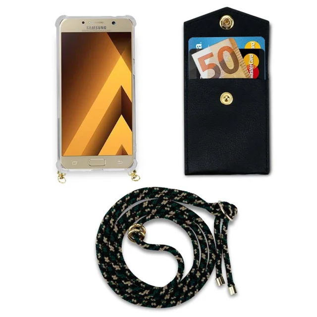 CADORABO združljiva s Samsungom v kamuflaži - silikonski zaščitni pokrov z zlatimi obroči, kabelskim pasom in snemljivim ohišjem