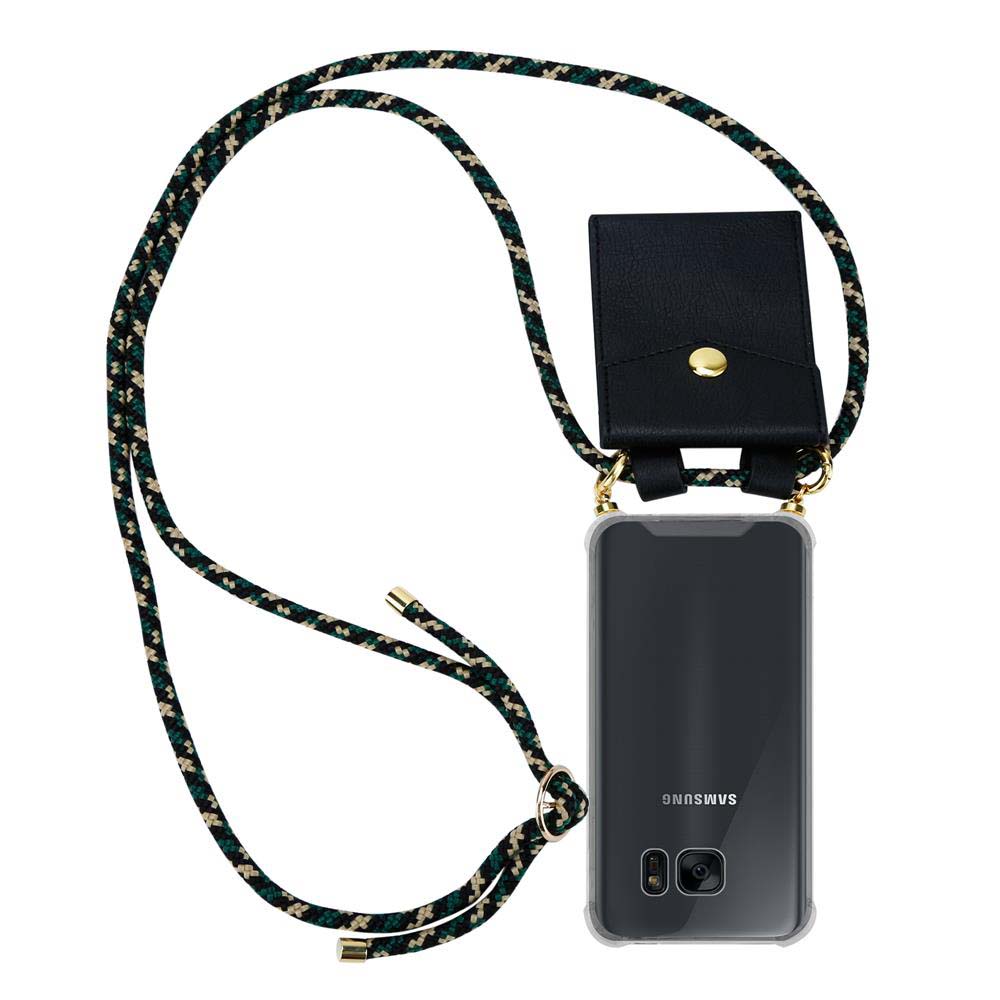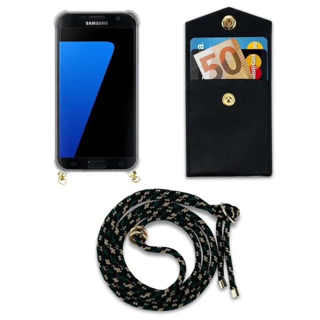 CADORABO združljiva s Samsungom v kamuflaži - silikonski zaščitni pokrov z zlatimi obroči, kabelskim pasom in snemljivim ohišjem