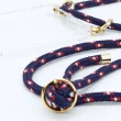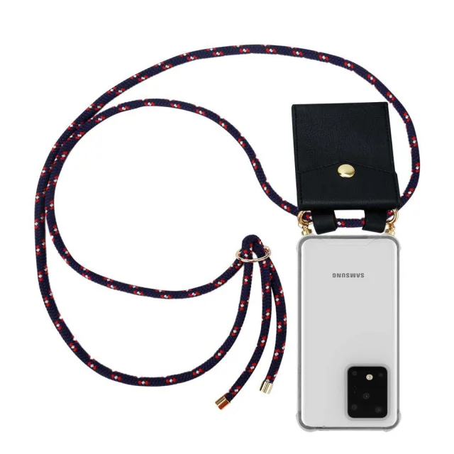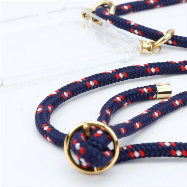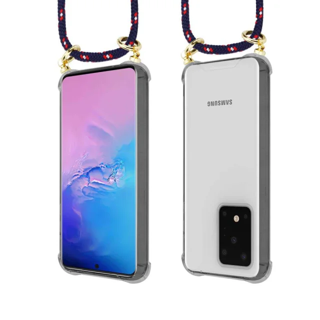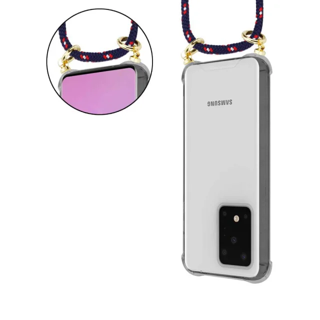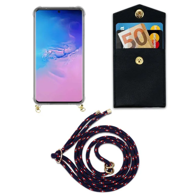 CADORABO Združljiva s Samsungom v modri rdeči beli piki - silikonski zaščitni pokrov z zlatimi obroči, jermen za vrvi in ​​snemljiv ohišje