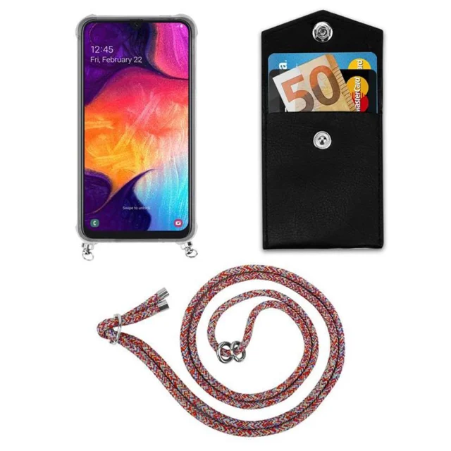 CADORABO združljiva s Samsungom v pisanem papigah - silikonski zaščitni pokrov s srebrnimi obroči, jermen z vrvicami in snemljivimi ohišji