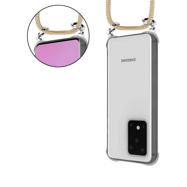 CADORABO Združljiva s Samsungom v sijoči rjavi barvi - silikonski zaščitni pokrov s srebrnimi obroči, jermen z vrvi in ​​snemljivimi ohišjem