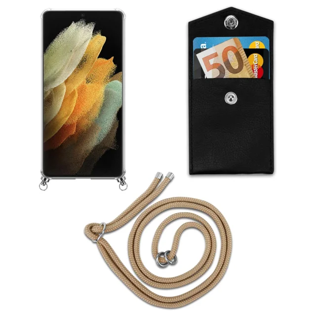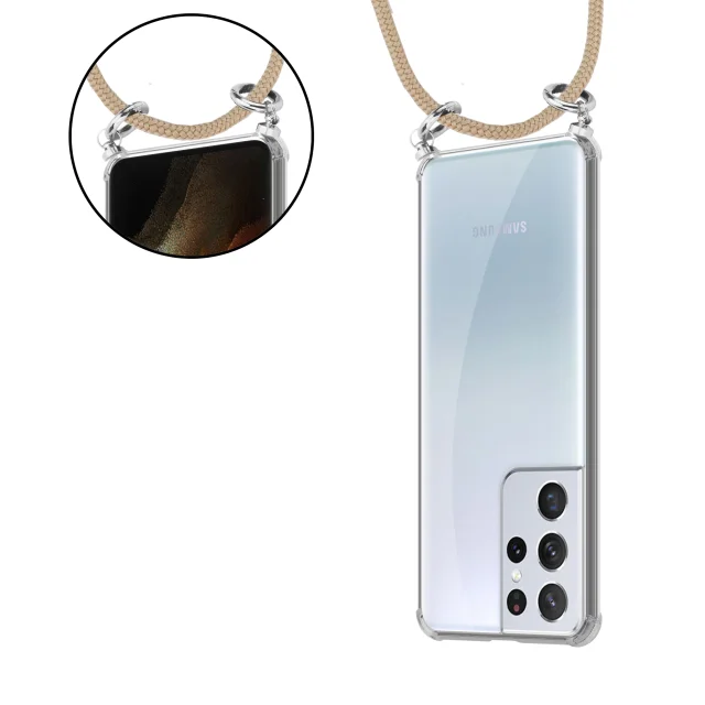 CADORABO Združljiva s Samsungom v sijoči rjavi barvi - silikonski zaščitni pokrov s srebrnimi obroči, jermen z vrvi in ​​snemljivimi ohišjem