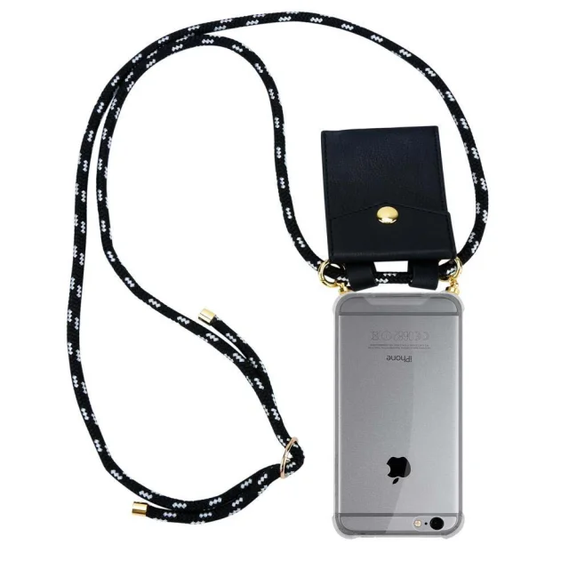 CADORABO Združljiva z Apple v črni srebrni barvi - silikonski zaščitni pokrov z zlatimi obroči, jermen za vrvi in ​​snemljivimi ohišjem
