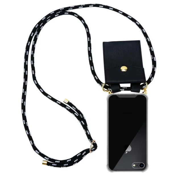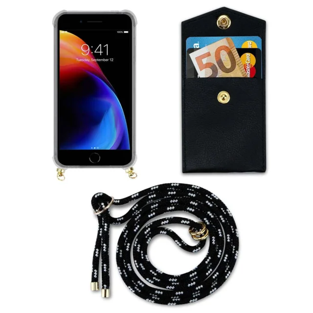 CADORABO Združljiva z Apple v črni srebrni barvi - silikonski zaščitni pokrov z zlatimi obroči, jermen za vrvi in ​​snemljivimi ohišjem