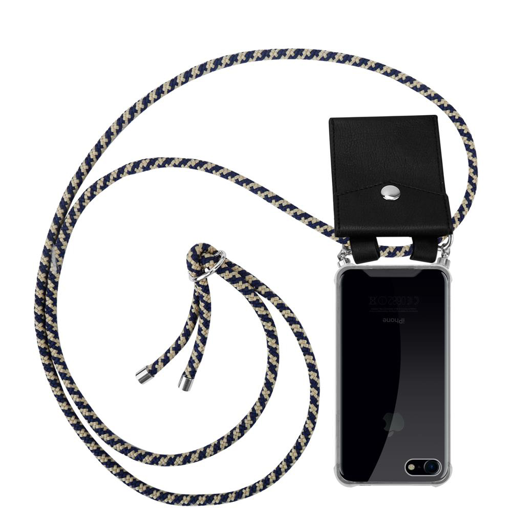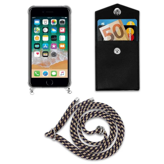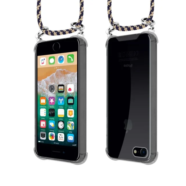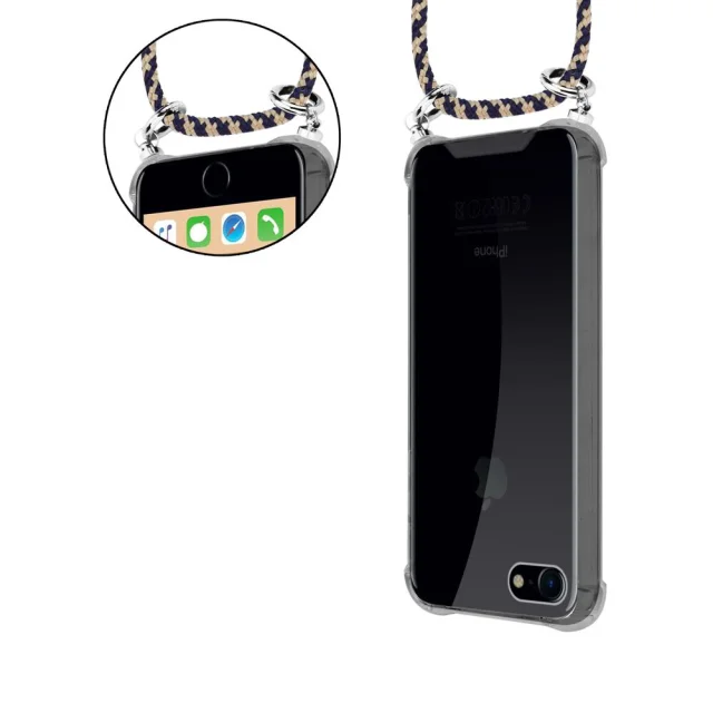 CADORABO združljiva z Apple v DarkBlue Yellow - Silikonski zaščitni pokrov s srebrnimi obroči, jermen za vrvi in ​​snemljiv ohišje