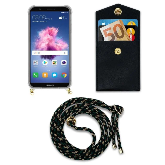 Cadorabo ramenska torba iz prozornega silikona TPU z vrvico in majhno torbico za kartice in denar