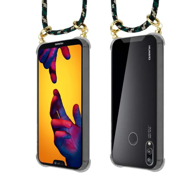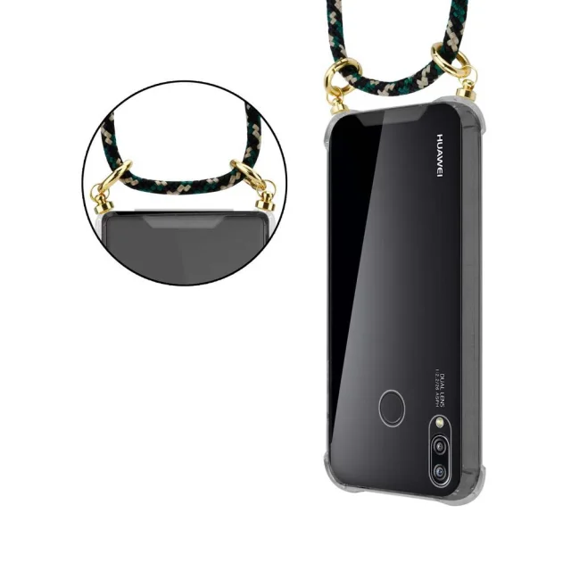 CADORABO združljivo s Huawei v kamuflaži - silikonski zaščitni pokrov z zlatimi obroči, pasom za vrvi in ​​snemljivim ohišjem